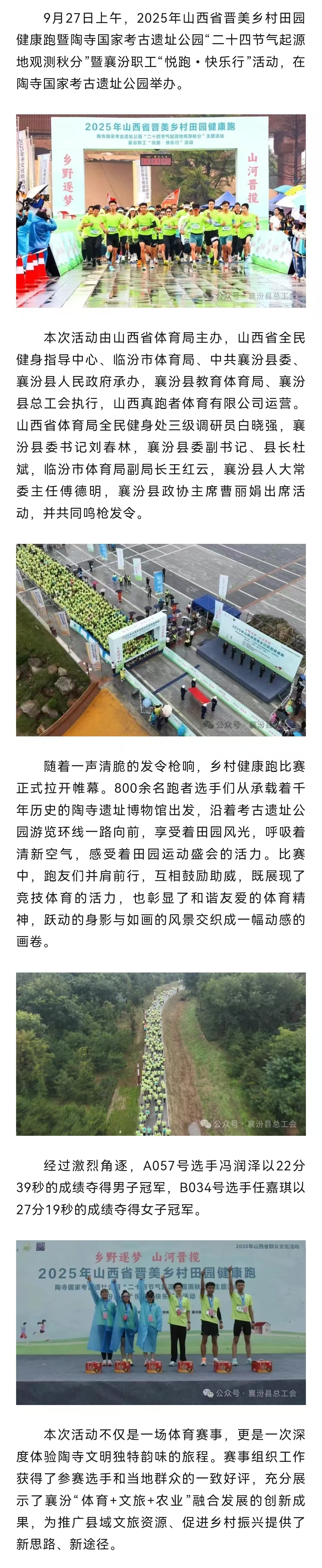 【区县动态】山西省晋美乡村田园健康跑暨陶寺国家考古遗址公园“二十四节气起源地观测秋分”暨襄汾职工“悦跑•快乐行”活动举办