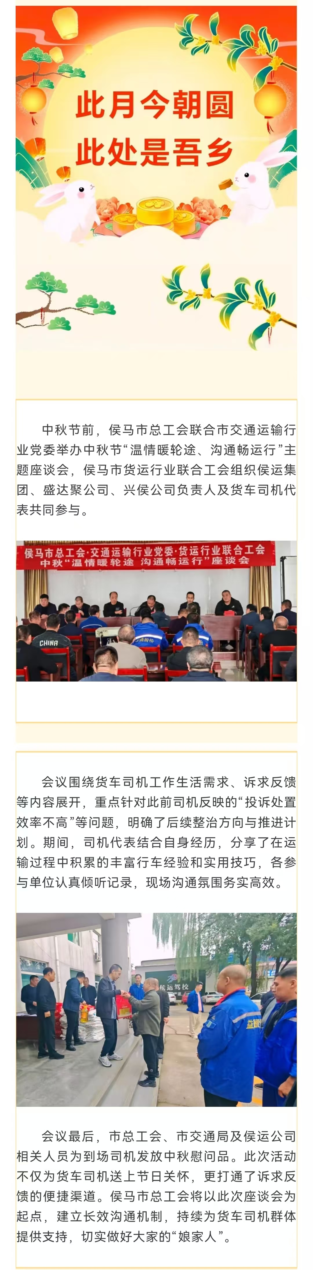 侯马市总工会开展中秋节“温情暖轮途 沟通畅运行”主题座谈会