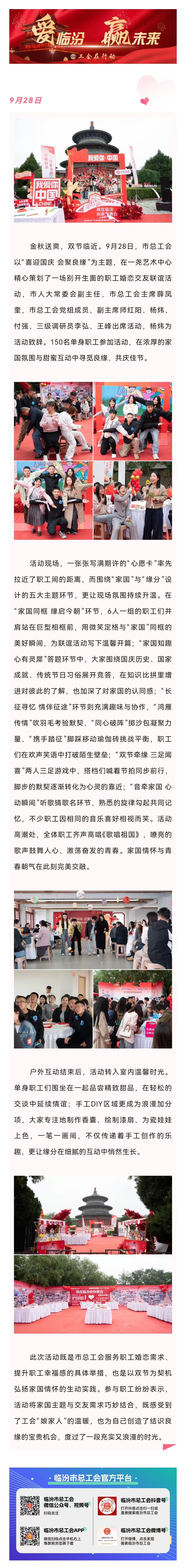 市总工会举办“喜迎国庆 会聚良缘”联谊活动 150名单身职工共赴双节浪漫之约